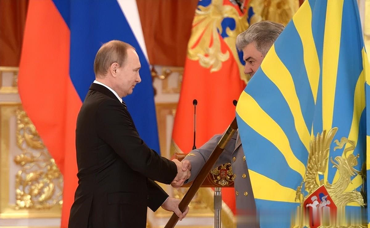 2016年3月17日俄罗斯联邦武装力量最高统帅 弗拉基米尔·普京授予战旗空天军总司令、空天军上将维克托·邦达列夫。