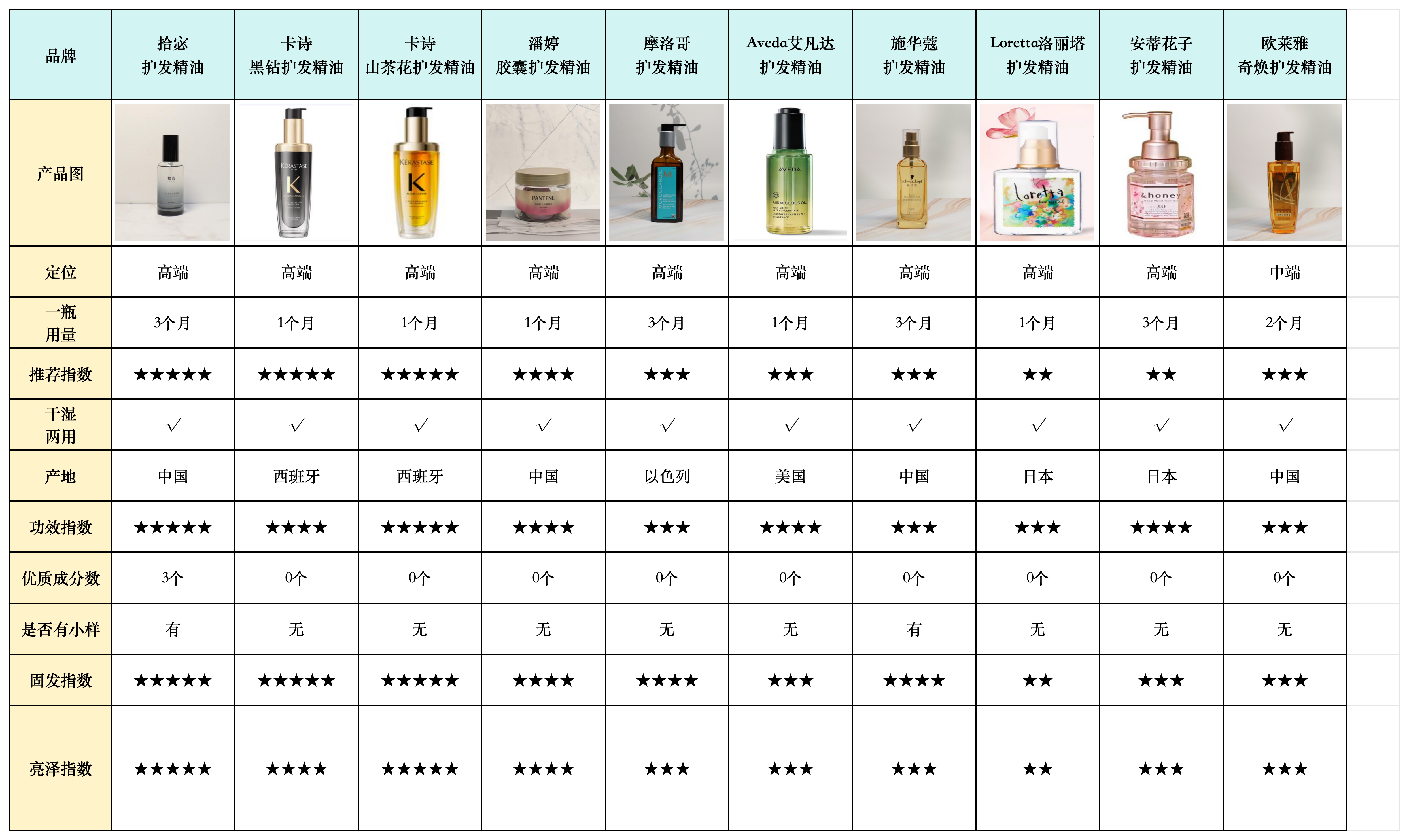下面是几款护发精油的详细数据。