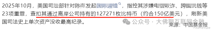 25年10月,某集团电诈头子陈某因多项罪名被起诉,美国司法部直接查扣了其持有的12.7万枚比特币,当时价值约150亿美元的比特币,就这么被轻松锁定、冻结,甚至说被没收。