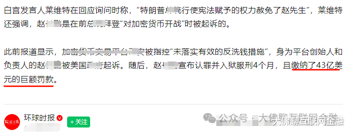 差不多同一期间,另一位币圈大佬老赵,也是在美国交了巨额罚款,才被川普特赦。