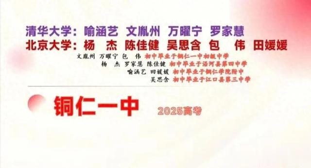 其中3人初中毕业于铜仁一中初级中学、3人初中毕业于沿河县第四中学、2人初中毕业于铜仁学院附中、1人初中毕业于江口县三中。