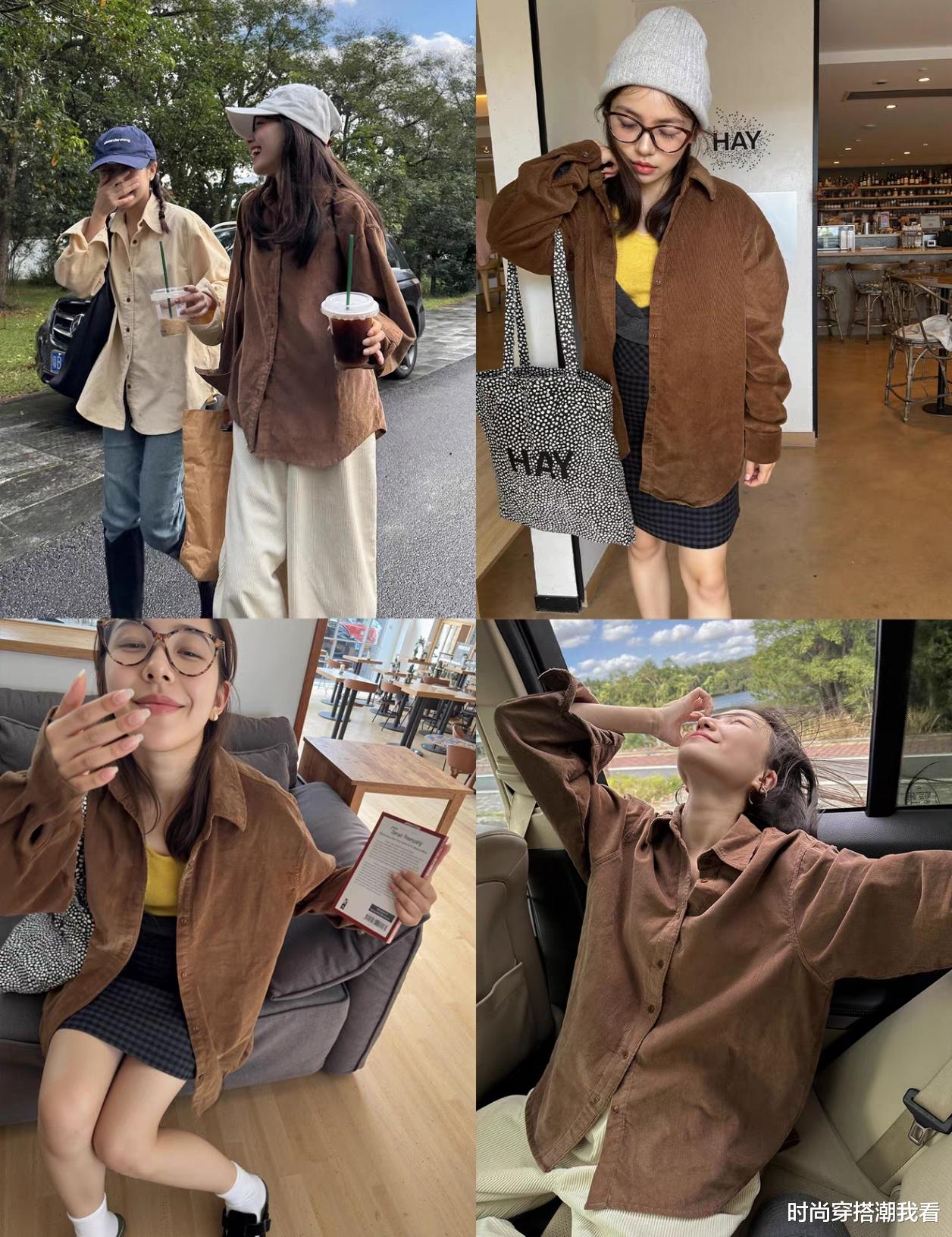 包括毛衣、针织衫、衬衫等,都是很实用的单品。栗子色衬衫单穿就很有味道,搭配蓝色牛仔裤,轻松穿出毫不费力的时髦感。