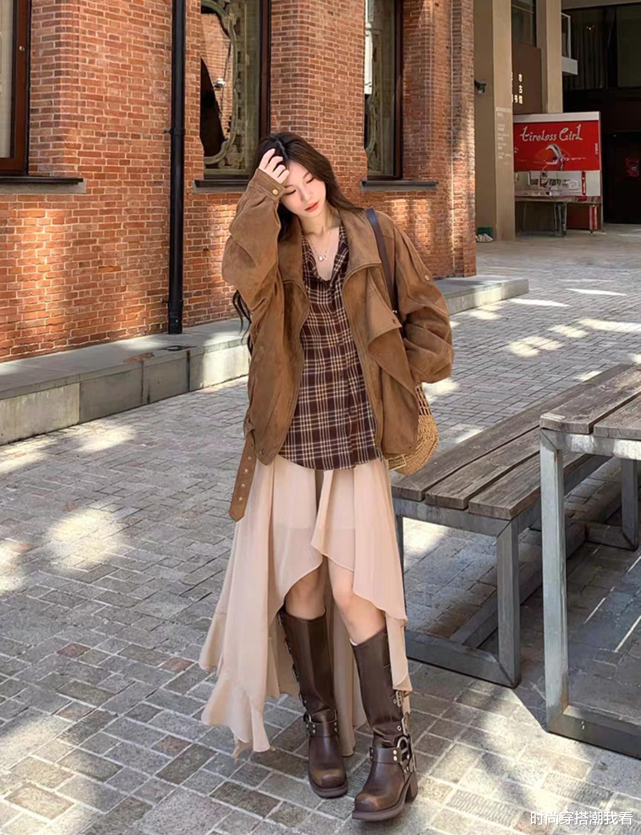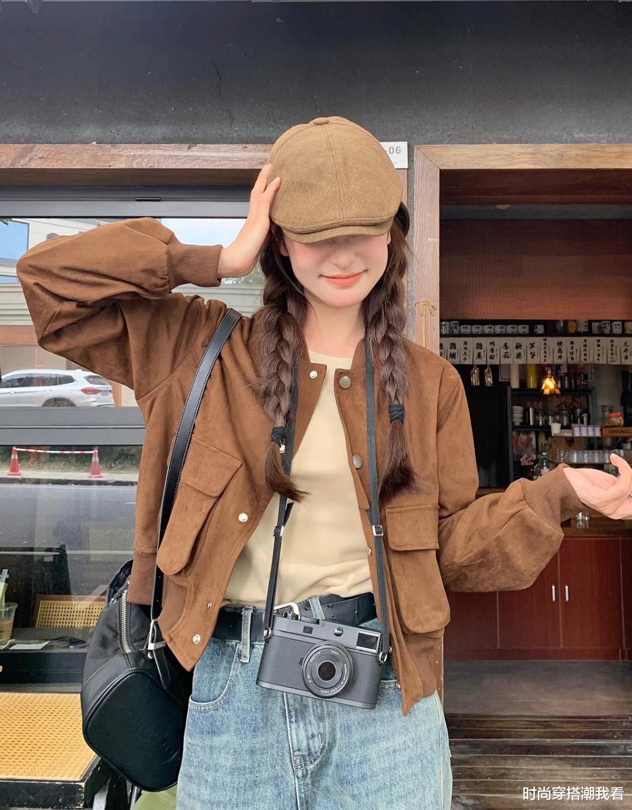 这两者搭配带来的复古休闲风别有一番韵味。栗子色外套搭配蓝色牛仔裤,堪称经典组合,既时髦又显白,还带着一丝复古的调调。牛仔裤的休闲感能平衡栗子色的正式感,打造出毫不费力的时髦造型。