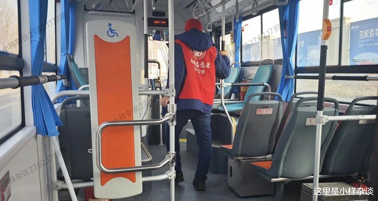 (沈阳公交155路支线,2026年2月17日拍摄)在另外一辆155路支线公交车上看到的平安志愿者是一位年轻的女士了,这位女士的安检动作是比较严格的,动作非常明显,但是正月初一的中午,乘客不多,除了沈阳建筑大学和长青街恒达路起点站有点乘客外,基本没有发挥的空间。这趟车的平安志愿者提前下车了,还剩下8站的时候直接下班了,一共27站,在第19站下车了。关于沈阳公交这个平安志愿者一直颇受争议,有用吗?确实有些存在的意义,那么为什么不一直有呢?为什么沈抚示范区的公交就没有呢?空间上为什么只有沈阳公交车在节假日的时候才有?沈抚示范区治安太好公交车上不需要安检?沈阳又不是哥谭市!(哥谭市指的是动漫蝙蝠侠中,其所居住的城市,也是一个虚构的城市,在动漫中,也是用于指代混乱不堪,坏人坏事频发,治安比较差的城市)时间上为什么只有节假日才有呢?难道危险品只有只有节假日才出现在公交车上?尤其是春节这个节假日平安志愿者的用途更加体现不出来了,因为春节期间乘坐公交车的乘客数量对比其他节假日来说可太少了。而且遇到拿危险品上车故意搞事情,上演现实版《开端》,这些志愿者也起不到作用的,上图中老大爷腿脚都不好,指望他跟歹徒搏斗?真的上演《开端》的剧情,就是多一个受害者而已。志愿者实际上起到的作用就是陪伴司机,唠唠嗑,让司机不至于困,有这个资金真的不如直接给司机了,让司机多问问乘客袋子里装没装什么危险品,每年只在节假日这几天出现,只能徒增乘客的吐槽和司机的羡慕。