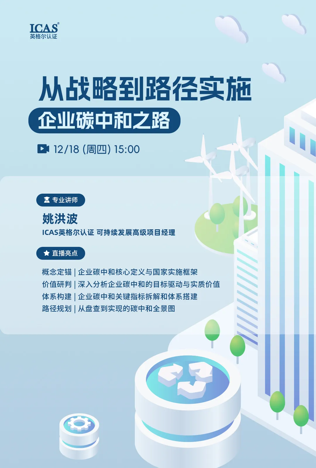 2025年12月18日,ICAS英格尔认证举办《从战略到路径实施:企业碳中和之路》线上专题研讨会,诚邀您观看现场直播,化挑战为机遇,将碳中和目标转化为高质量发展的新动能。