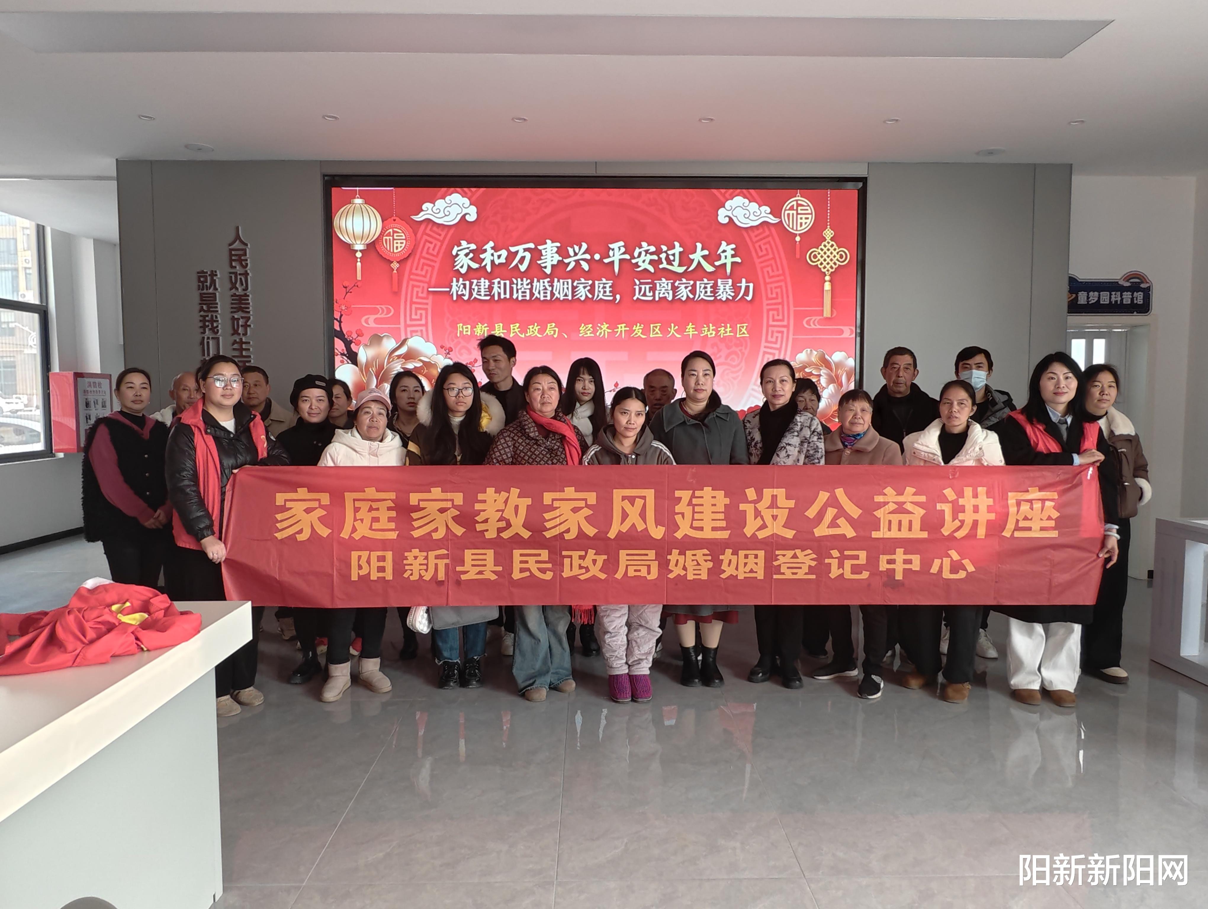 1月16日,阳新县婚姻登记中心携手火车站社区,共同举办“家和万事兴・平安过大年”婚姻家庭公益讲座,吸引了众多社区居民积极参与。