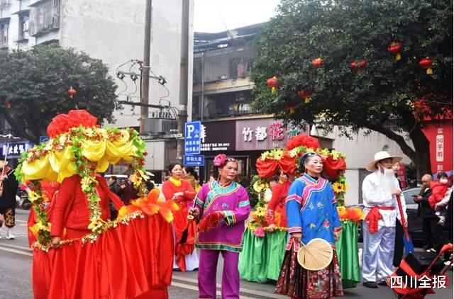 活动现场,沿街商铺招牌熠熠生辉,各式各样的灯笼、彩旗和春联将老街装点得喜气洋洋。市民们穿梭在熙熙攘攘的人群中,脸上洋溢着期待和喜悦的笑容。随着一场别开生面的民俗文化巡游盛宴在西街广场上演,整个活动正式拉开序幕。巡游队伍沿着南正街、剧专大道、学府大道、西正街进行环线巡游,锣鼓方队、舞龙舞狮方队、腰鼓方队、川南婚俗方队等传统文化表演轮番上演,为市民们带来了一场精彩的视听盛宴。