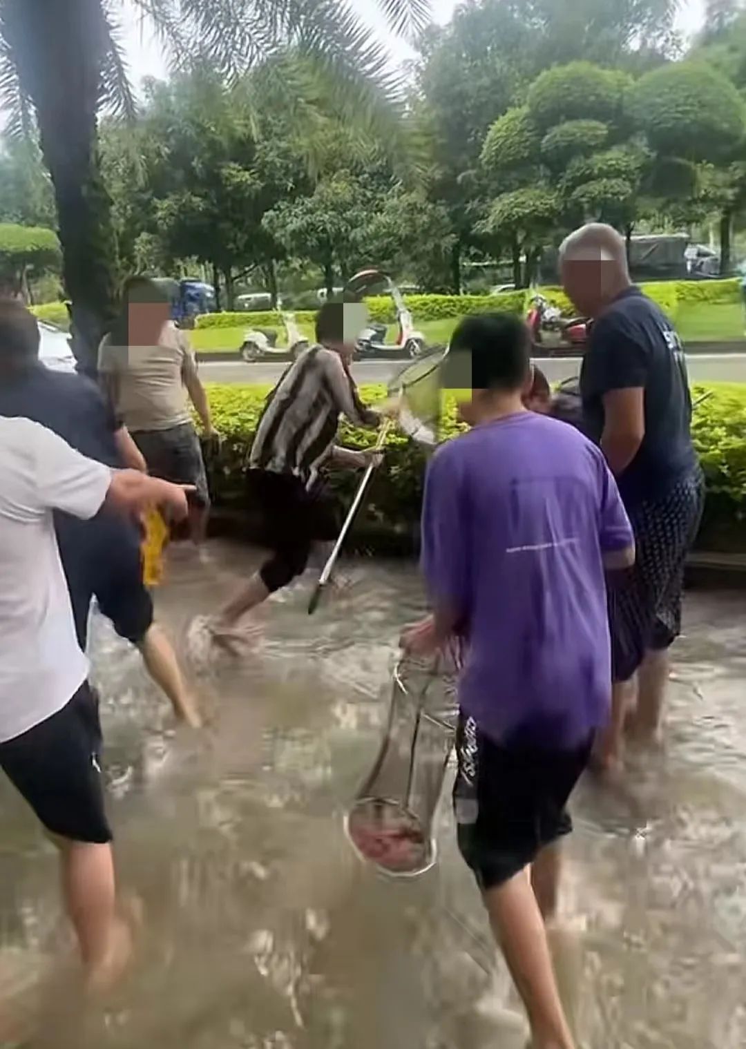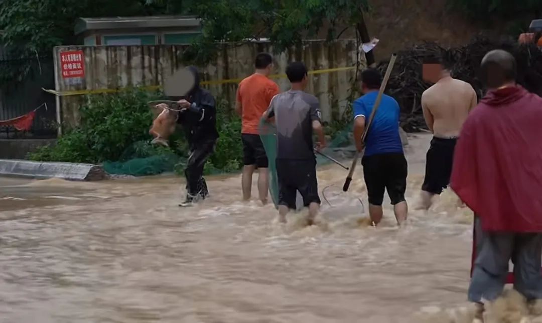 ▲市民在洪水里抓鱼(网络)