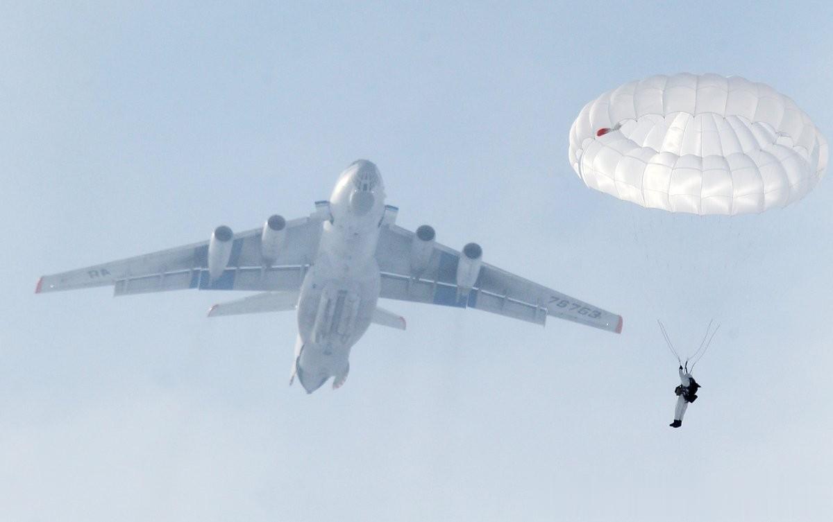 106近卫空降师主力部队在演习中从伊尔-76飞机上空降图片来源:阿列克谢·库杰宁 / 俄新社