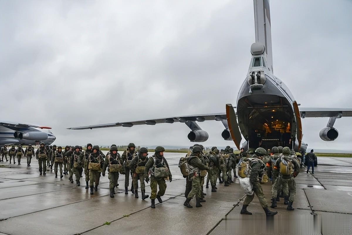 31独立近卫空降突击旅的军人在伊尔-76上装载,以训练空降技能