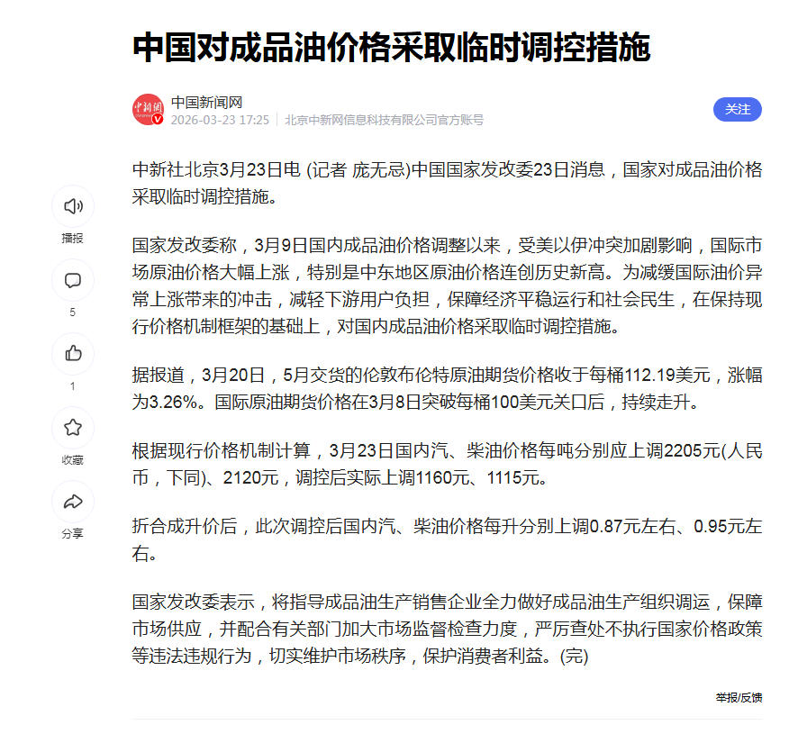 国家临时管控油价,是立足国情、应对外部极端风险的**民生之举、稳经济之举、安全之举**,既解决了当下民众和企业的燃眉之急,又守住了宏观经济稳定的底线,平衡了市场化运行与公共利益保障。这一举措充分体现了政策的温度与力度,也印证了在全球能源格局动荡的当下,我国始终把民生福祉和经济稳定放在首位,用务实调控筑牢发展安全屏障的核心思路。