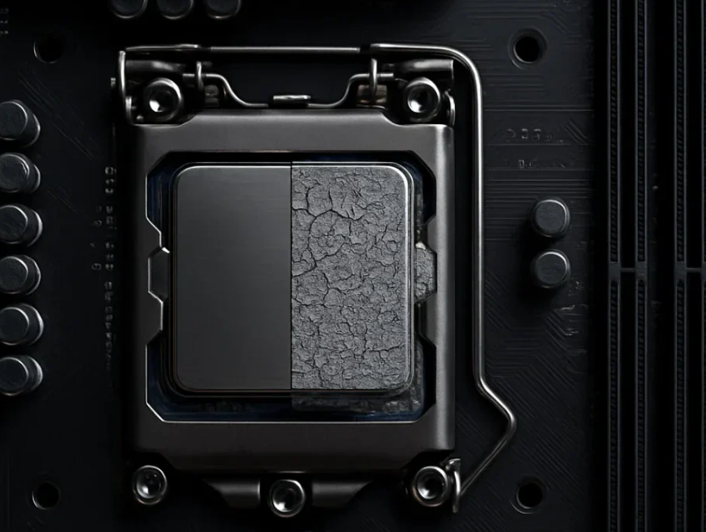 在长期使用过程中,高温会使液态基质发生蒸发和氧化,从而与导热填料分离。当基质变质、挥发或油离后,硅脂会逐渐失去其黏性,最终变得干硬、粉化或干裂。此时,它已经无法有效填补处理器与散热器之间的空隙,其热传递效率也因此大幅降低,最终导致失效。这一物理和化学变化,正是导热硅脂需要定期更换的根本原因。