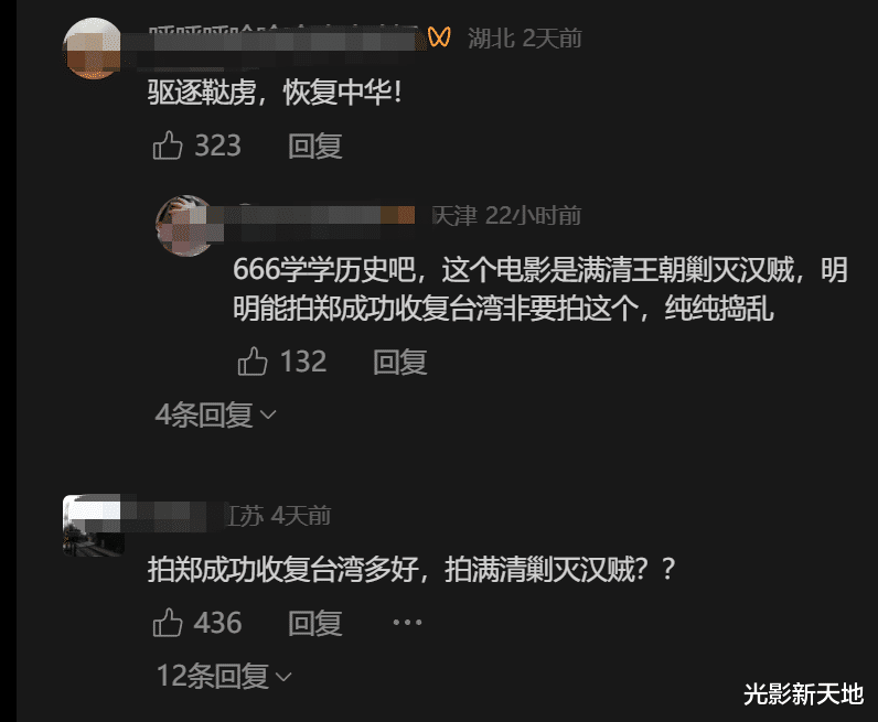 更有数不清的大V站出来批评电影的历史观,痛斥《澎湖海战》的“历史视角错误,完全站在满清朝廷的角度违背历史。”并表示当时满清根本不是为了收复台湾岛,而是为了消灭明郑军,甚至联合了荷兰人攻打台湾等等。最后质问“香港导演魔改历史,是要替谁洗地?”
