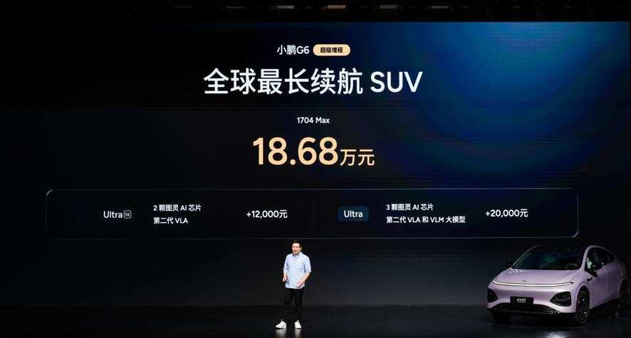近日,小鹏汽车举行小鹏G6超级增程上市发布会,新车定位六项全能AI增程SUV,以“六项全能 一步到位”为核心,凭借同级综合续航第一、同级补能速度第一、同级车端有效算力第一、同级最强底盘系统、同级最强主动安全和同级得房率第一的六大核心优势,打造真正满足用户全场景需求的国民车。本次发布小鹏G6超级增程1704 Max,官方指导价为18.68万元,用户可选装两个智能升级包,加购12,000元升级为Ultra SE版本、加购20,000元升级为Ultra版本。即日起至2026年3月31日24点前下定小鹏G6超级增程,可享至高价值33,200元限时权益礼包,包括5,000元新春购车补贴、至高价值9,300元金融/选装基金(二选一)、至高价值5,000元置换权益、至高价值13,500元复购权益和价值400元交付礼。