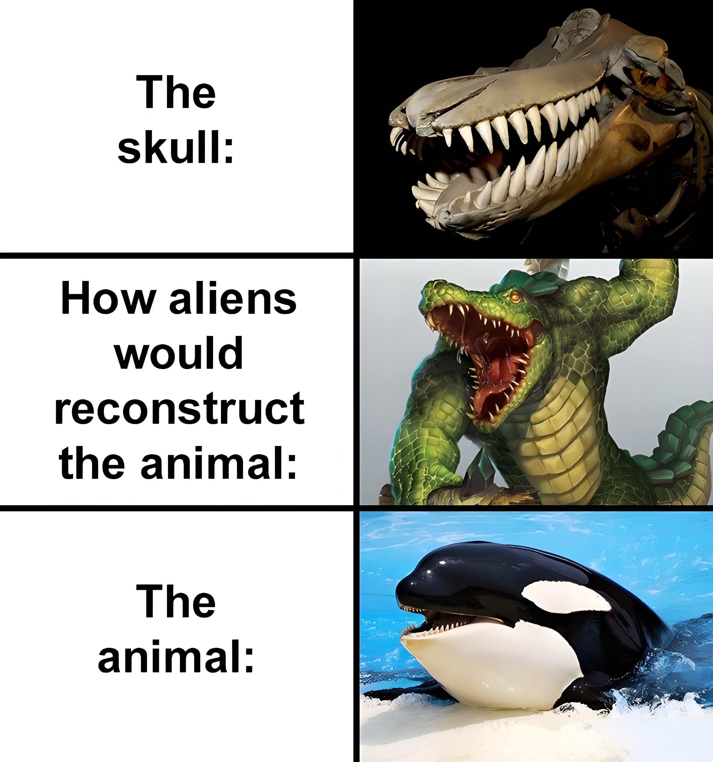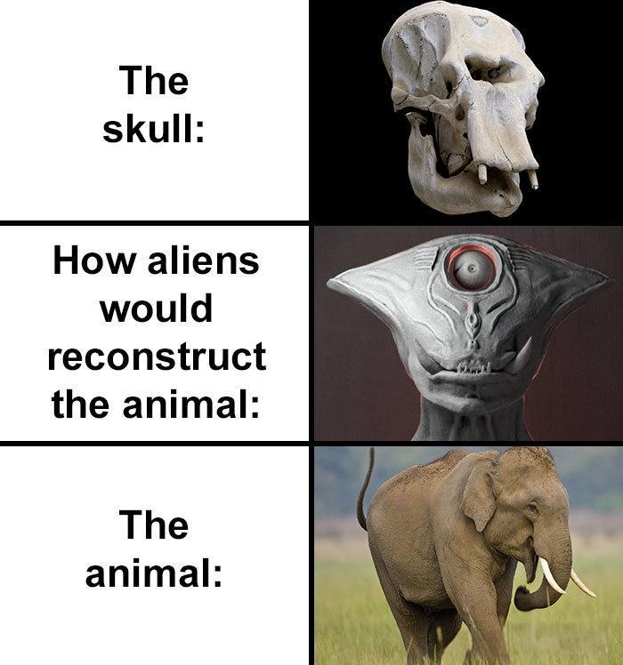 直到某一天,古生物学家在某一处居然找到了大象的软体得以保存,才发现大象居然拥有着惊人的长鼻子。然而事实上,软体是极难保存的。也就是说,或许在未来无法复刻出大象真正的样子。