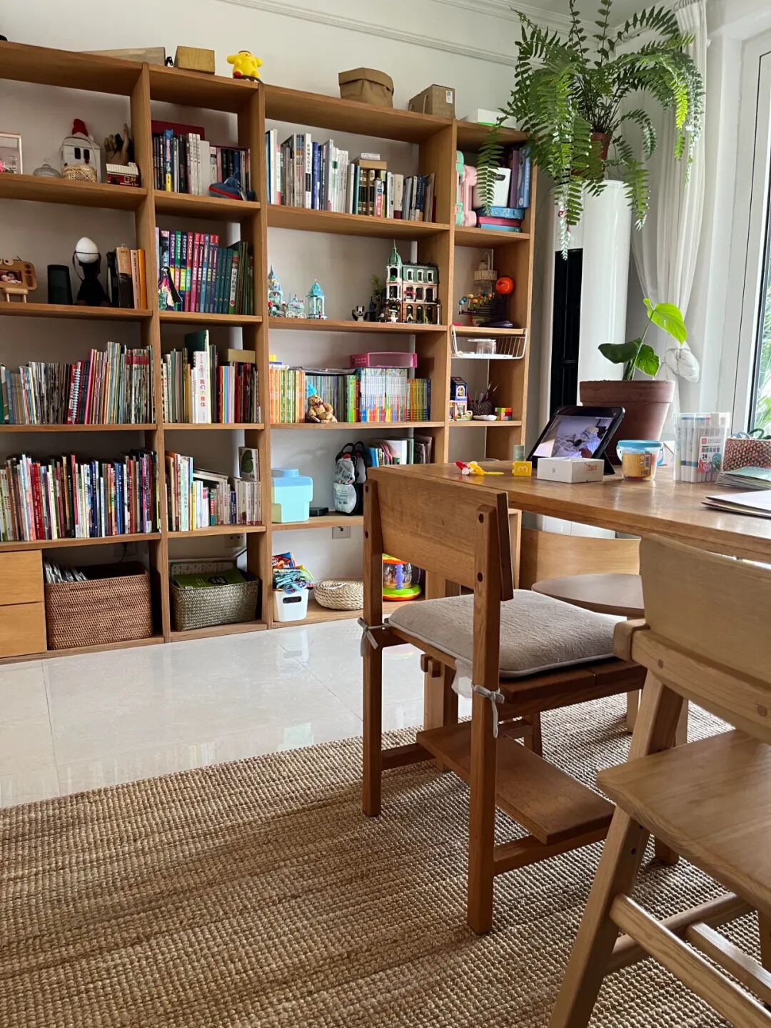 网友@大千和小橙子 家也是一样,她说当初顶着全家人的反对,设计成去客厅化的书房,整个家的氛围感绝了,培养娃的阅读习惯都方便多了。