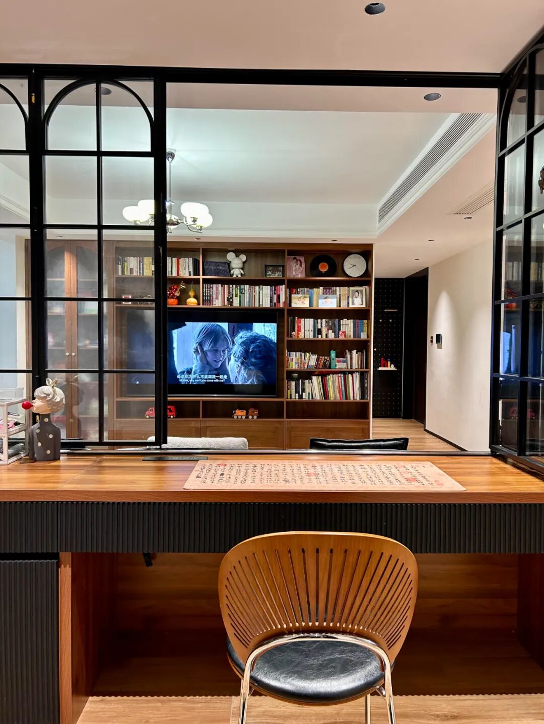 什么客厅电视必须C位的,都是老一辈的执念。现在的我们,更需要一个能静心读书、专注工作、陪家人聊天的地方。满墙的书不一定要读完,但它们默默提醒你:生活除了柴米油盐,还有更广阔的世界。