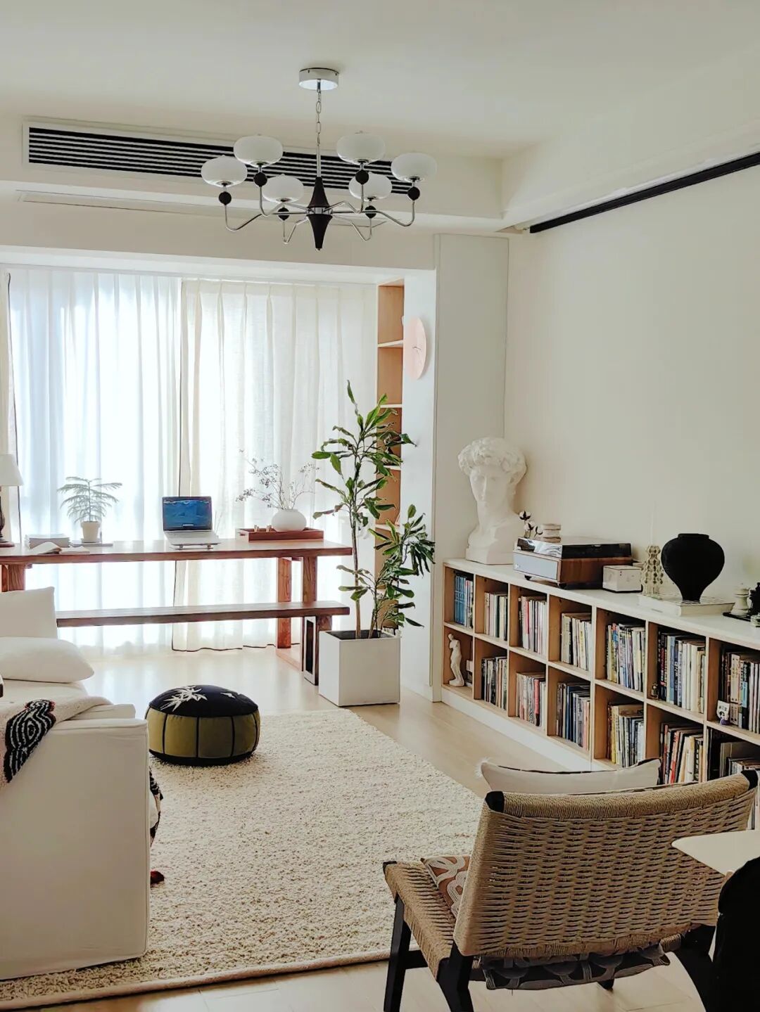 说实话,当初我说要去客厅化的时候,被家里人骂了个狗血淋头:“客厅没电视像什么话?”“亲戚来了坐哪儿?杵书堆里尬聊吗?”