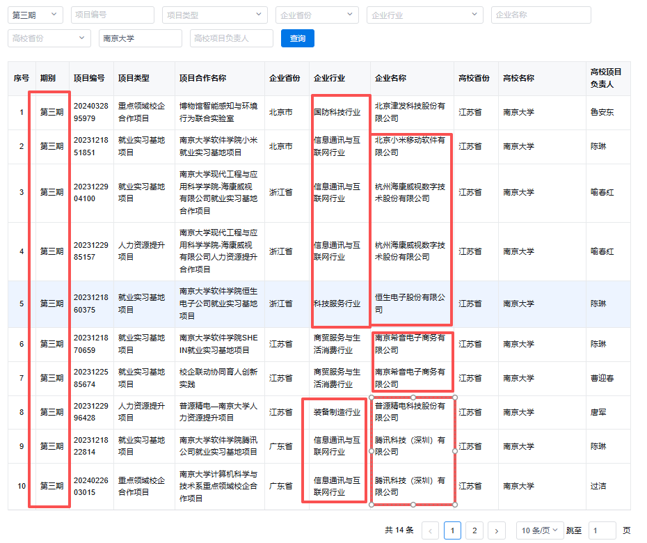 南大的校企合作项目(第三期14项+第四期1项),本质是“行业需求”与“学科优势”的精准匹配。其中最亮眼的是信息通讯与互联网行业(占比超70%),其次是科技服务、装备制造、能源动力三大领域。每个赛道的实习基地,都能给学生带来“不可替代”的价值:
