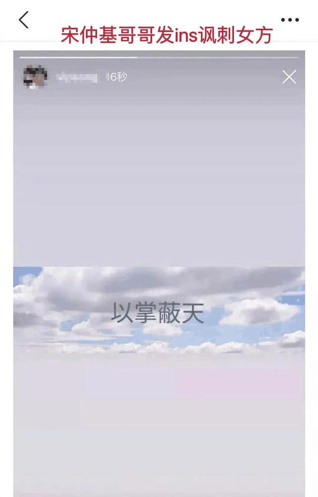 在双宋离婚闹得不可开交时,网络上渐渐出现了“宋仲基哥哥在ins上发以掌蔽天的图片,疑似暗讽宋慧乔,并且他删光了与宋慧乔有关的照片与消息。