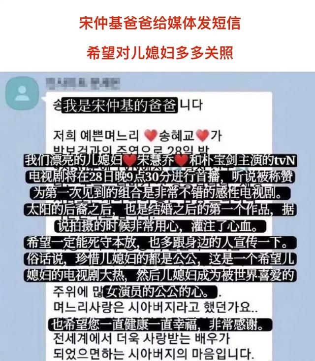 宋仲基爸爸发短信给媳妇的内容