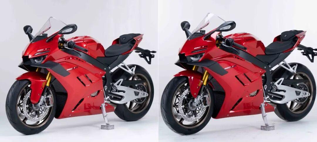 820RR-R则是820RR的升级车型,最大的不同就是搭载了更高规格的刹车系统,前后卡钳升级为Brembo,前后减震升级为KYB(均具备全可调功能),轮胎也升级为倍耐力V4热熔胎。而且动力上820RR-R也更为强悍,最大功率来带107kW/13,500rpm,最大扭矩85Nm/10,000rpm,最大马力直接干到145.5匹,而且同样具备前挡泥板的不同样式选配。