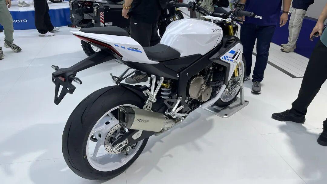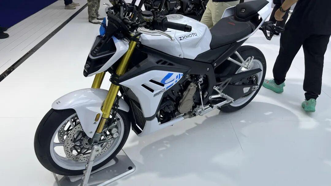 张雪机车820R外观依旧不是什么秘密,不论是去年摩博会还是前不久张雪展会上都有亮相。在保持820RR车身结构的基础上,我们仔细观察其实820R脚踏位置变化并不大,但它具备更高更宽的手把,坐姿自然也变得更加直立放松。