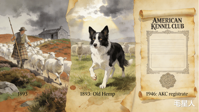 关于边境牧羊犬的起源,流传最广的说法与19世纪的苏格兰牧羊人亚当·特尔弗(Adam Telfer)有关。1893年,特尔弗培育出一只名为“老Hemp”(老Hemp)的牧羊犬,这只犬不仅能精准执行“卧、坐、追、停”等基础指令,更能通过眼神与肢体语言与羊群建立“心理威慑”,仅用凝视就能让羊群乖乖聚拢,其牧羊效率是普通牧羊犬的3倍以上。老Hemp一生繁育了160多只后代,几乎所有现代边境牧羊犬的血统都可追溯至它,因此被公认为“边境牧羊犬的开山鼻祖”。