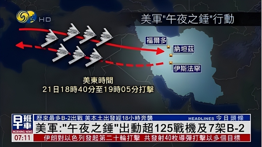 6月22日美军启动了一个代号叫“午夜之锤”的行动,派出了B-2隐形轰炸机,目标非常明确,就是奔着伊朗地下的核设施去的。