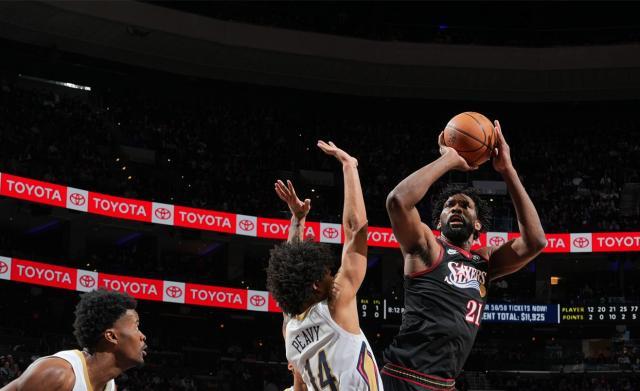 恩比德在首节得到8分,一次篮下补篮得分,另外3次中距离投篮得分。76人首节31比33落后鹈鹕2分。