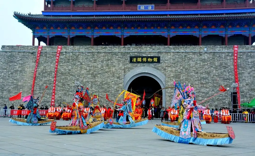 潼关赛场周边的非遗,藏着黄河边的独特巧思,南街背芯子堪称民间绝活,铁架为芯悬着孩童,以高、险、奇、巧出圈,旋转自如还能走出各式队形,这门非遗还登上过人民大会堂的舞台;还有潼关古战船,2200多年的黄河军事文化活化石,战阵表演搭配锣鼓,还原古战场的豪迈,氛围感拉满。