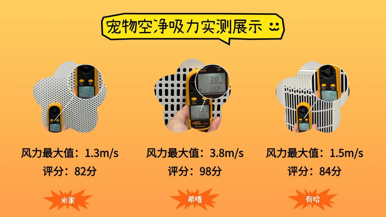 在风速这一项,希喂的优势最明显,更能支撑高浓度、反复出现的养宠污染;米家和有哈偏常规,风速没上 2 m/s,更适合污染压力较轻、或者更看重其他体验(如智能操作、体积外观)的人群。