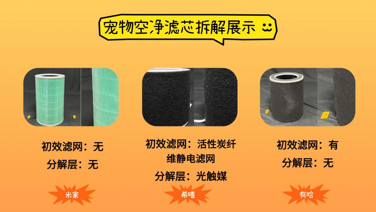 拆开三款机器的滤芯,看看内部结构和用料层次,并记录下来。再放进内模拟异味环境的封闭舱内,对比谁能在同样条件下更快、更彻底地去除气味,考验真实净化效果。