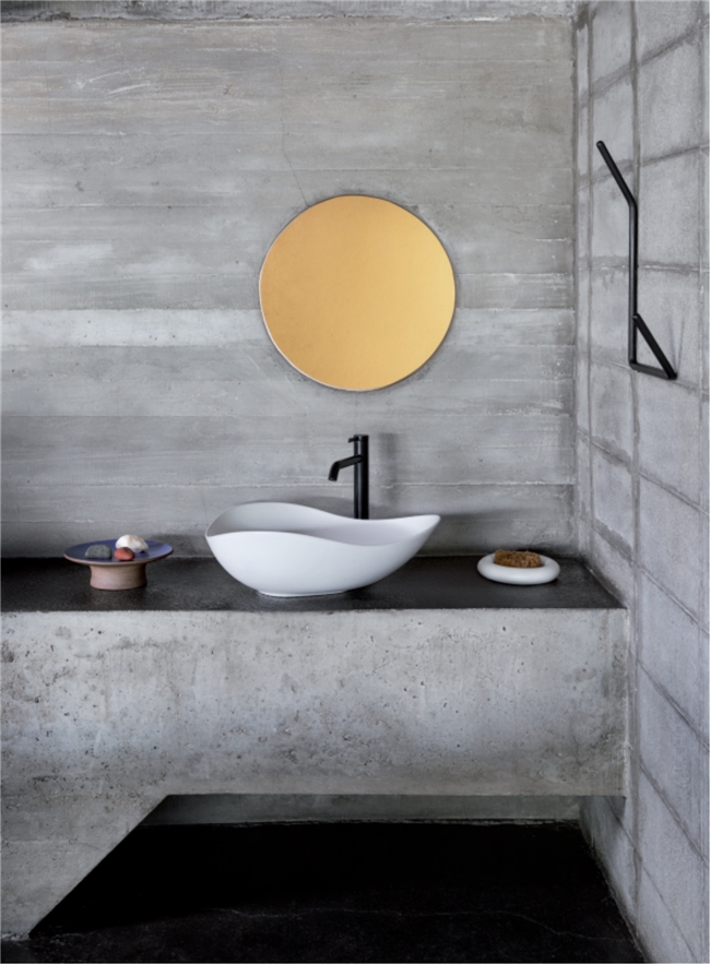 Ohtake系列的设计细节,处处彰显建筑美学与卫浴功能的共生。在核心产品台上式薄陶洗脸盆的设计上,Ruy Ohtake摒弃冗余装饰,以弧形表面和圆形造型为核心,将巴西科帕卡巴纳海滩的波浪形态、潘塔纳尔湿地公园的自然肌理融入产品轮廓,既呈现出建筑般的雕塑质感,又契合水的流动特性。产品拥有550×385mm和Φ380mm两种尺寸,陶瓷白、哑光白、柔米色、哑光黑四种饰面,其中哑光黑款凭借沉稳质感,搭配同色系欧那面盆龙头,打造出极简高级的空间氛围,适配多种家居风格。