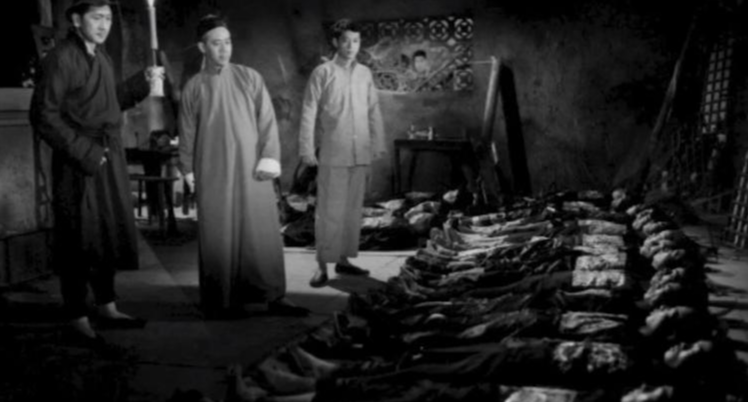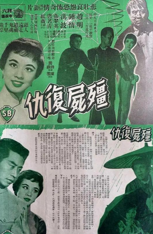 言归正传,1958年的《尸变》延续了《湘西赶尸记》的设定,也是假扮僵尸走私运毒,但加入了一点创新,那就是把茅山道士杂糅进了湘西赶尸,香港电影历来有这样的“历史虚无主义”传统,喜欢乱搭配,竟也鼓捣出了一点新玩意,后来的僵尸片总要加一个道士,就是从这里开始。1959年的《僵尸复仇》,讲述一对情侣被恶霸拆开,男方被杀死,变成僵尸复仇,故事也很老套,但也出现了新玩意,那就是僵尸身体僵硬、行动不便、力大无穷的设定。