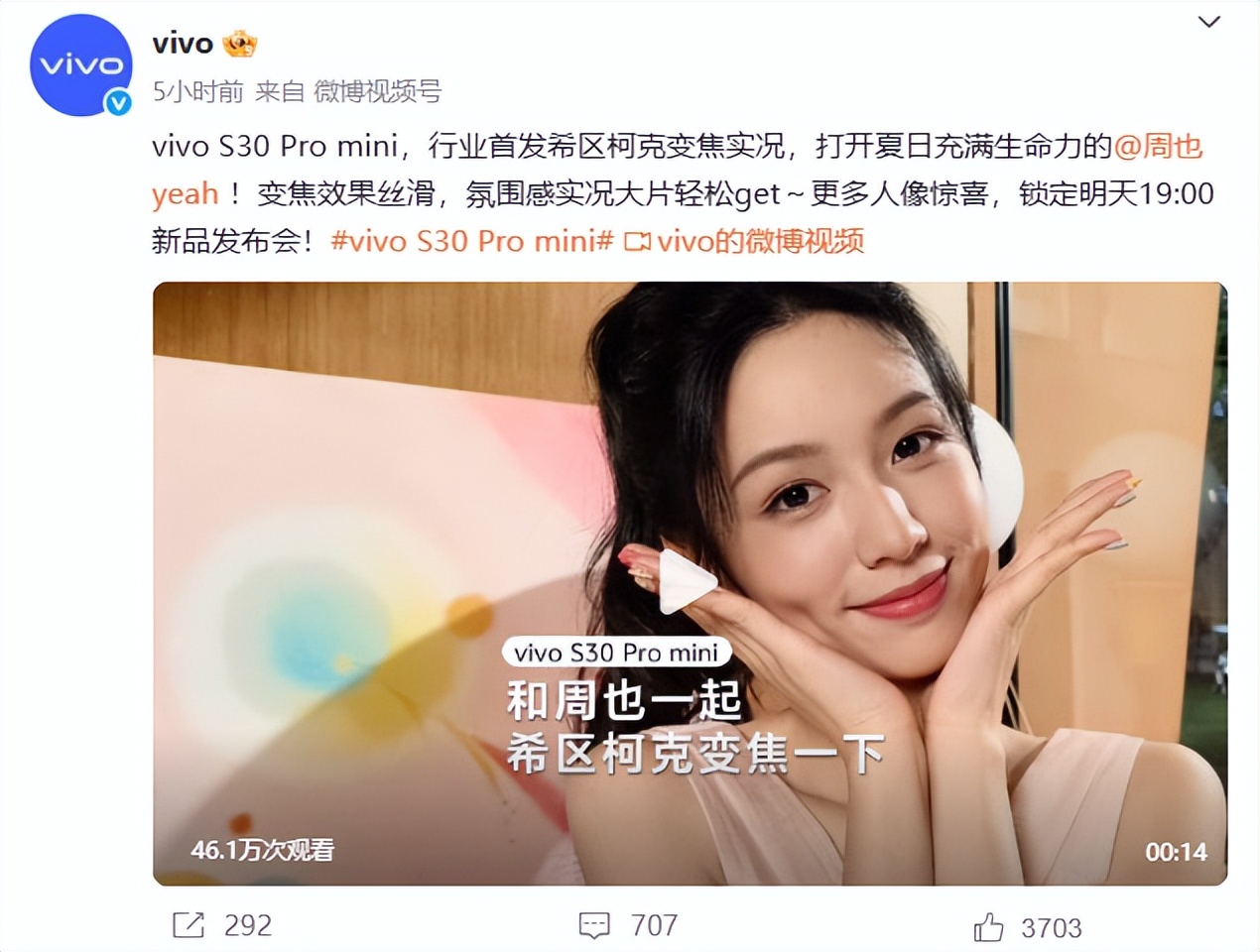 vivo 在发布会前一天官宣 S30 系列新动态,S30 Pro mini 将行业首发希区柯克变焦实况。品牌发布周也主演的相关视频,强化 “氛围感人像” 实力。该变焦通过同步推进镜头与拉远焦距,营造主体不变、背景空间压缩的视觉张力,契合年轻人个性拍摄需求。