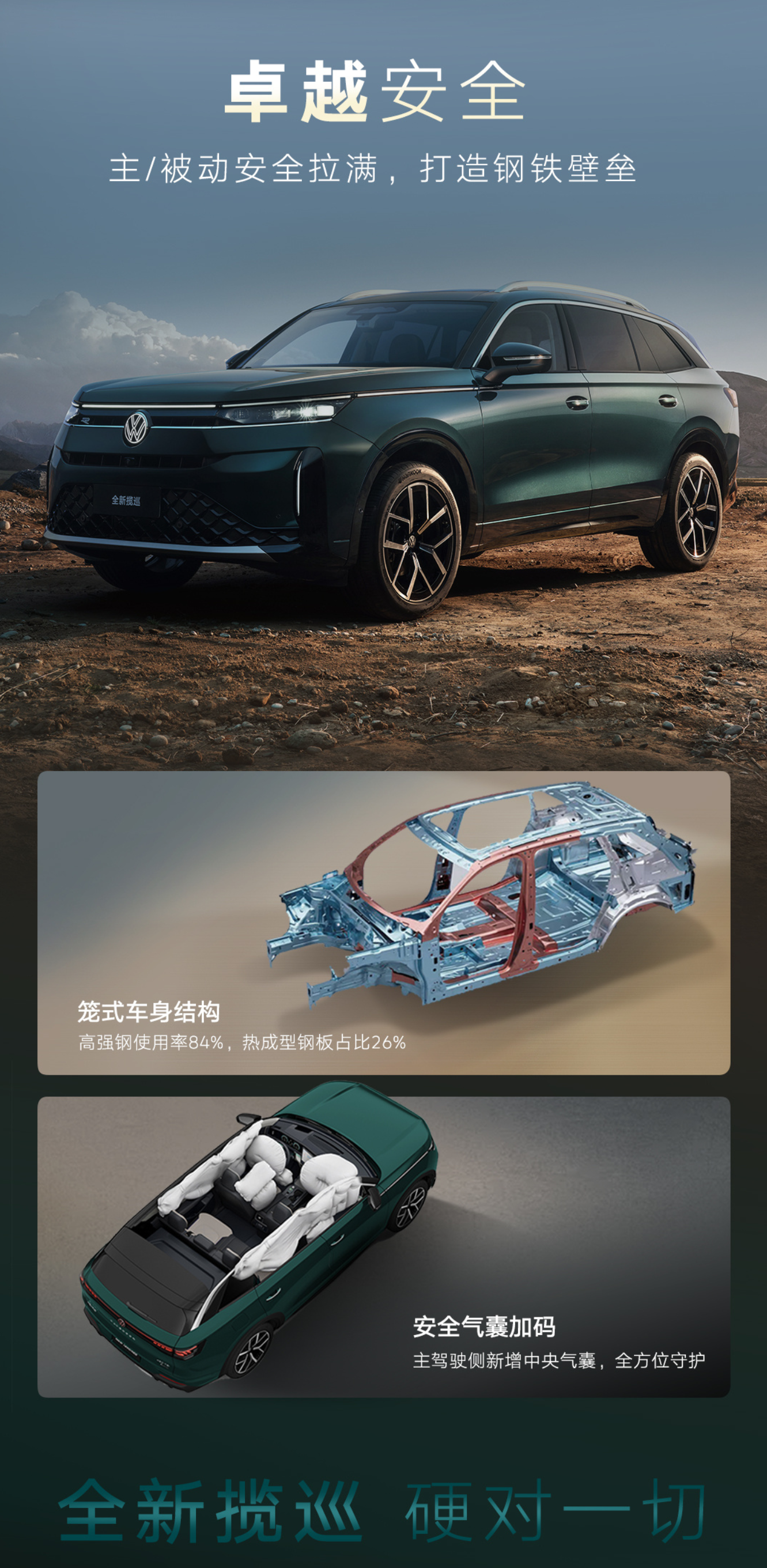一汽-大众全新揽巡于2026年3月31日重磅上市,以“硬核+智能+舒适”三位一体的产品策略,刷新中大型SUV标准。在Tavendor基础上,新车通过尺寸扩容、设计语言更新与智能化配置提升,精准回应用户对个性表达与高品质出行的双重渴望。