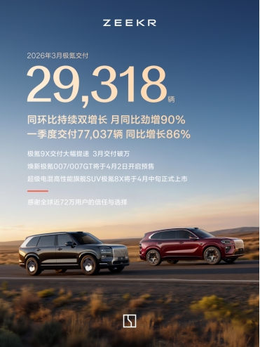 极氪3月交付量29,318台,数据看着还行。