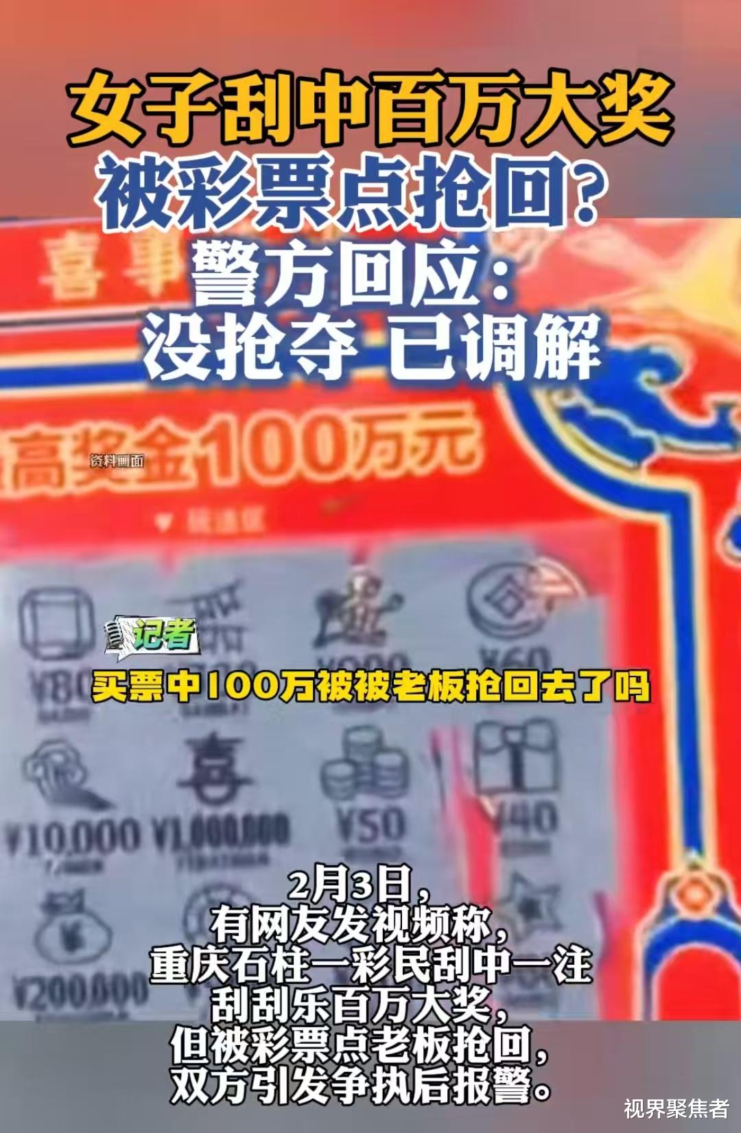 近日,“重庆石柱女子刮中百万大奖被彩票点老板抢回”事件闹得沸沸扬扬。尽管警方回应称没有抢夺且已调解,附近彩票店工作人员也