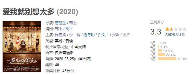 在去年陈建斌搭档李一桐主演的《爱我就别想太多》就是“霸道总裁爱上普通女员工”的故事,当时那部剧一开播就被吐槽,最终该剧以豆瓣3.3分,超过60%的一星差评收官。