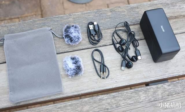 配件真的够贴心,除了主机,还配有2个防风毛套、1根Type-C充电线、2根3.5mm监听耳机、1根3.5mm的双头线、还有1个收纳袋。重点说下防风毛套,户外拍Vlog风大的时候套上,风噪直接降一半。