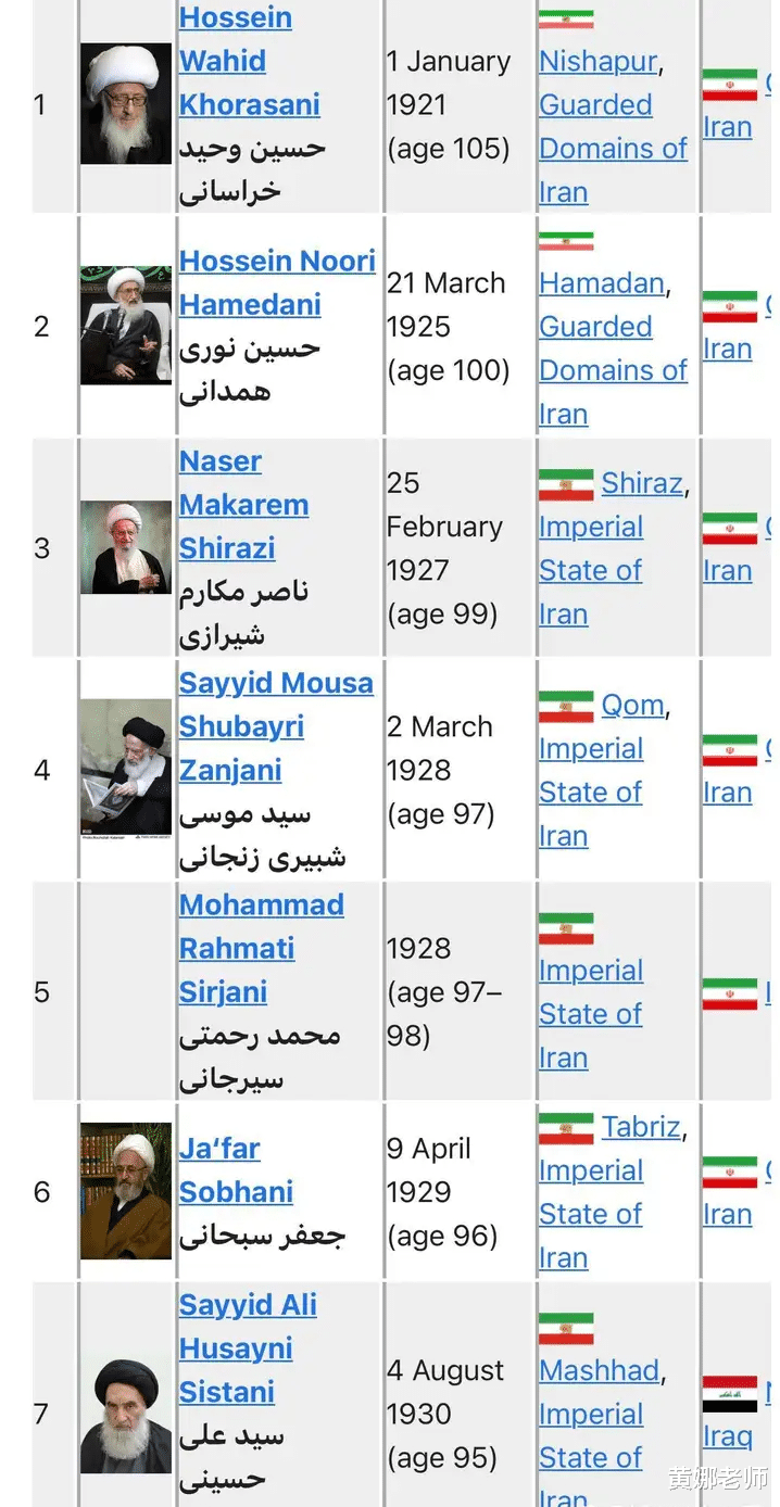 咱们看看以下的这些最高级教士、大阿亚图拉们的基本信息。