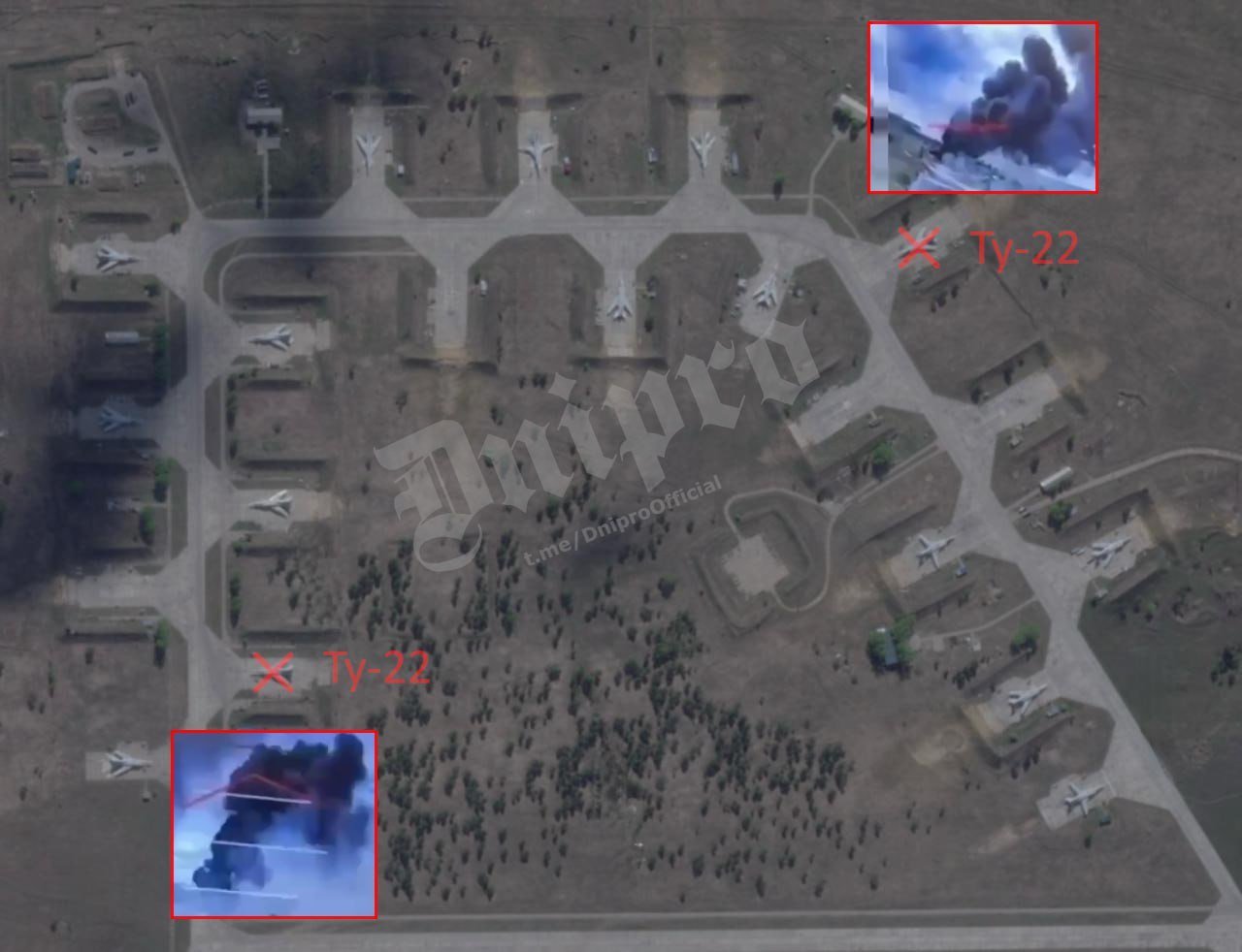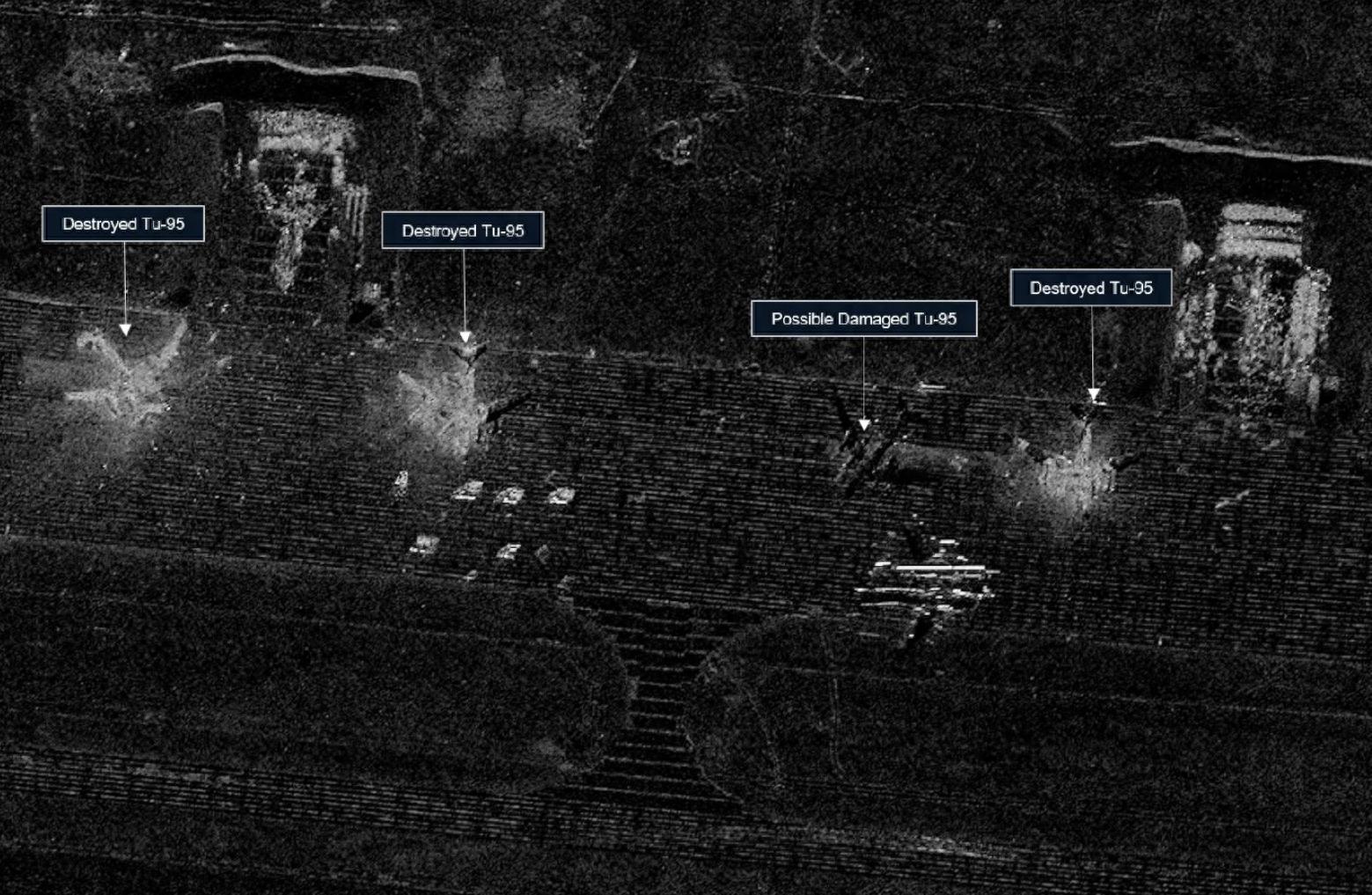 从袭击后曝光的现场视频与照片来看,俄军战略轰炸机群受损惨重。占大头的还是图-95MS轰炸机,这种轰炸机俄罗斯方面早已停产,目前是损失一架就少一架的情况,也无法弥补,好在这款战略轰炸机是目前俄罗斯空天军现役最老的型号,此外俄军还有2架图22M3战略轰炸机被摧毁。