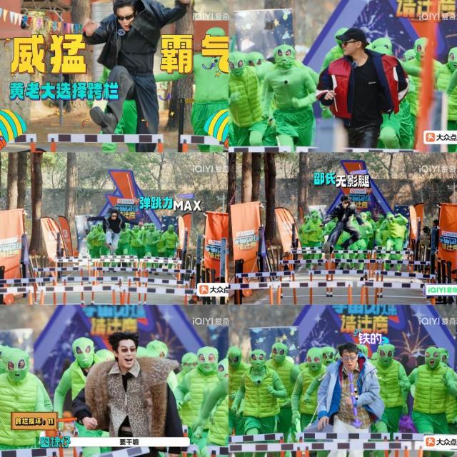 于洋把跨栏玩成闯关,不明状况大吼着逃跑;黄晓明一口气连跨四个;刘耀文被闪现的宇宙人吓出表情包成功跨过所有栏杆;邵子恒带着他那独有的乱七八糟跑姿跨过全程,王鹤棣被宇宙人追击直接撞飞所有栏杆,最后出场的黄子韬跑的最快,仅用19秒零失误逆转局势,成功拿下“宇宙飞人”绶带。