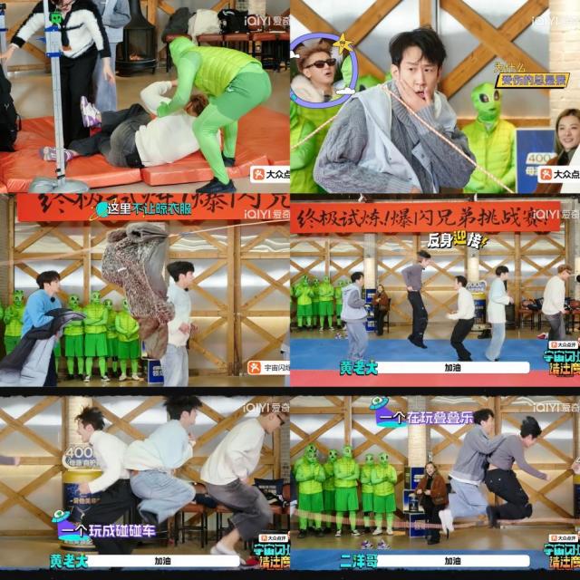 来到收官终极试炼爆闪兄弟挑战赛,前有兄弟众人托举王鹤棣跳高,黄子韬接连被踢;后有同心一跃团体跳绳,于洋刚进来就被绳子打了一巴掌。邵子恒在跳的过程中扔外套出去,把跳绳变成晾衣绳,最好笑的是黄晓明跳着跳着转了个身给后面兄弟加油,没想到和后面的邵子恒玩成了背对背碰碰车;于洋手搭在王鹤棣肩膀上跳,玩成了叠叠乐。