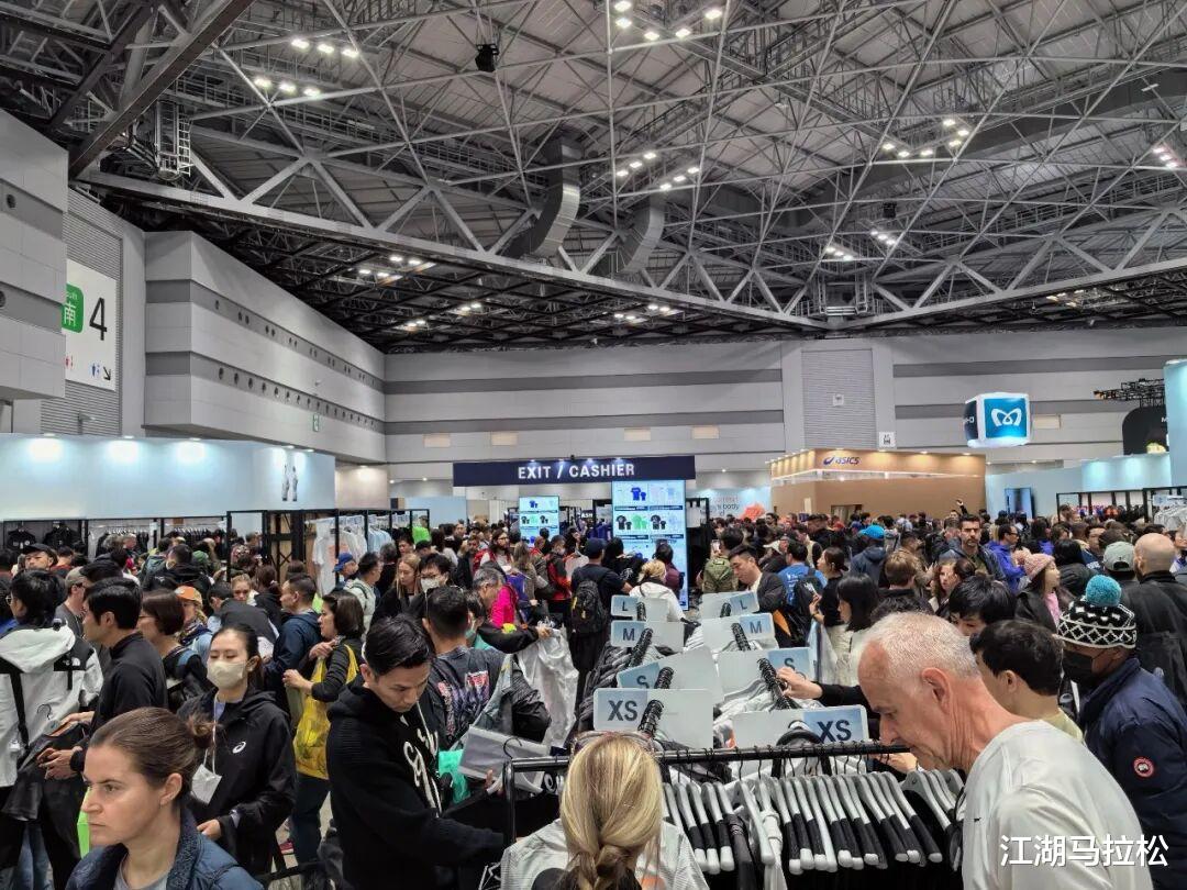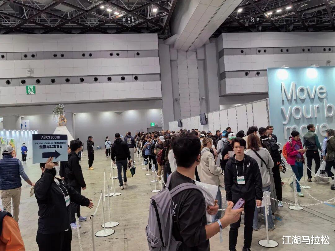 在东京马博览会,有些拍照的赞助商展台前,排着长队,但最长的队,出现在主赞助商ASICS的售卖展台。那真是人山人海、人头攒动、摩肩接踵啊。你要进场,还得排好长好长的队,我是排了5分钟后才进去的。