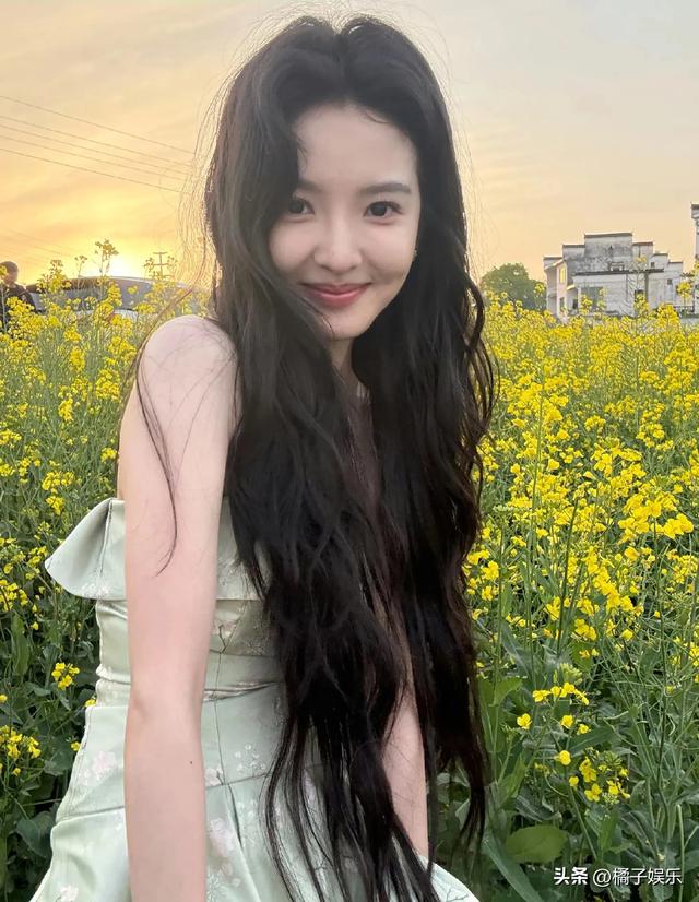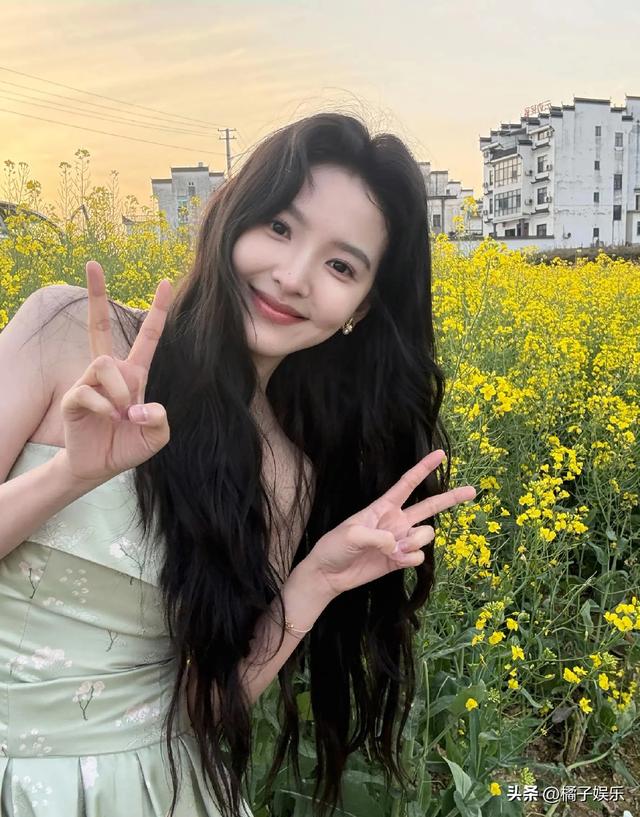 章若楠油菜花田里拍美照,春天气息扑面而来