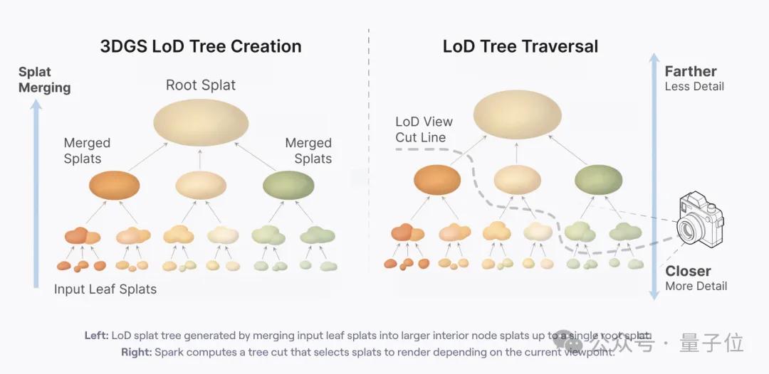 Spark采用的是连续型Level-of-Detail,核心是为所有splats构建一个层级化结构——Level-of-Detail Gaussian splat tree。