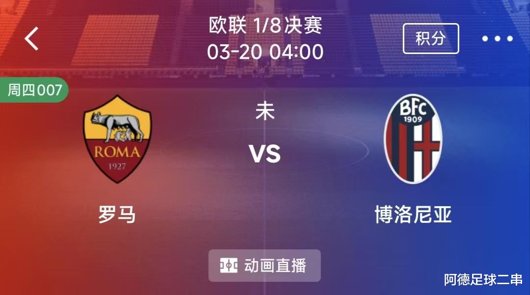 007欧罗巴:罗马VS博洛尼亚 时间:2026-03-20 4:00 场地:罗马奥林匹克球场