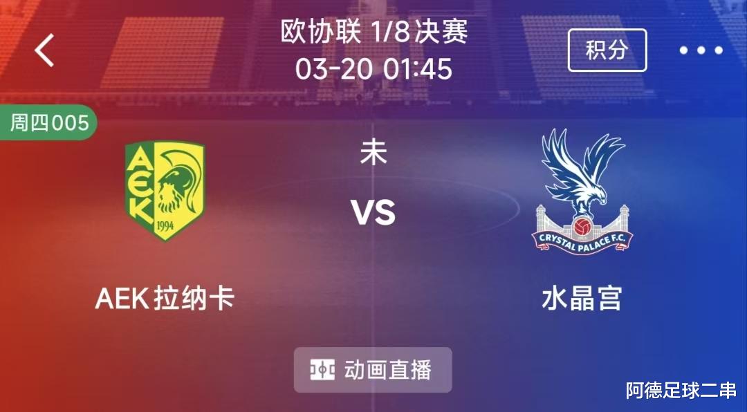 AEK拉纳卡近期状态出色,欧战防守堪称“固若金汤”,但球队伤病问题严重,多名主力缺阵,实力受损。水晶宫近期状态正佳,防守端表现尤为突出。尽管过往与拉纳卡交手战绩不佳带来心理压力,但水晶宫整体实力和阵容完整度更优,面对伤兵满营的拉纳卡,在客场有望凭借更强的实力和稳定的发挥,突破心理障碍,取得比赛胜利。